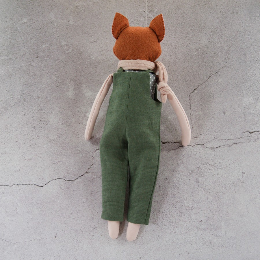 Rankų darbo siūtas simpatiškas Lapiukas su lino drabužiais dydis 35 cm