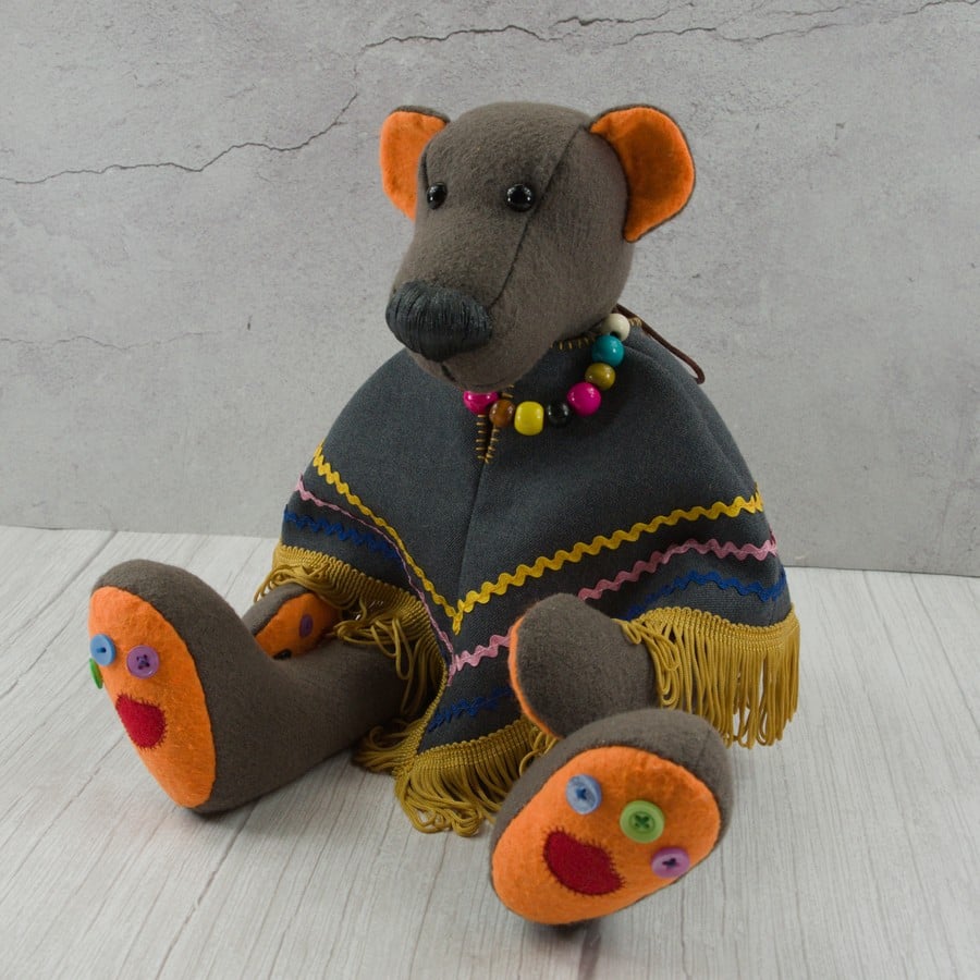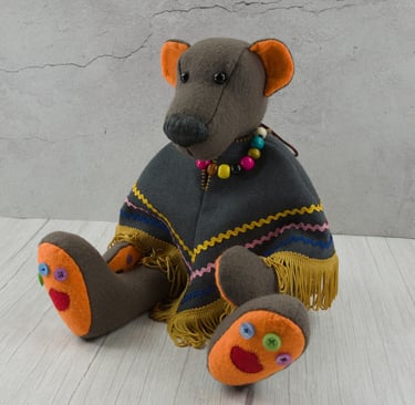 Žaislinis meškis bus puikus kompanionas vaikui arba interjero dekoracija, kuri tarnaus ne vienus metus, nes žaislas yra tvirtai susiūtas ir standžiai kimštas. Skalbti geriau rankomis.